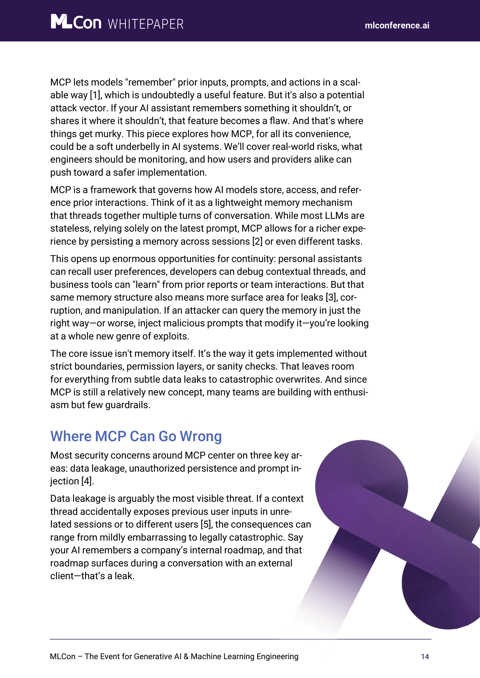 • Where MCP can go wrong: data leakage, unauthorized persistence, prompt injection
